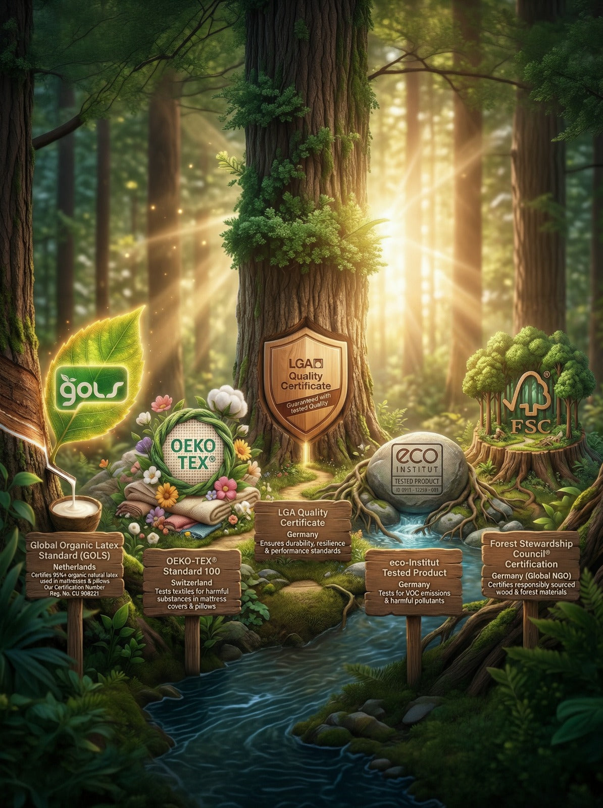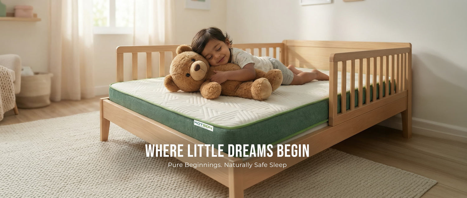 Kotson Mattress is crafted with GOLS Certified 100% Organic Natural Latex and wrapped in premium materials tested for safety and purity.